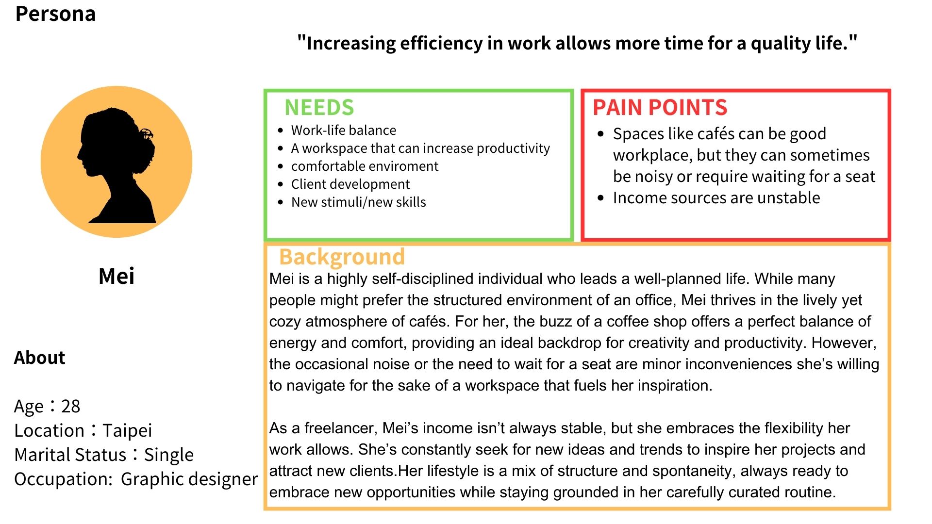 Based on our findings, we identified our primary persona. This transition transforms broad observations into the specific motivations that drive Working Ler’s community: