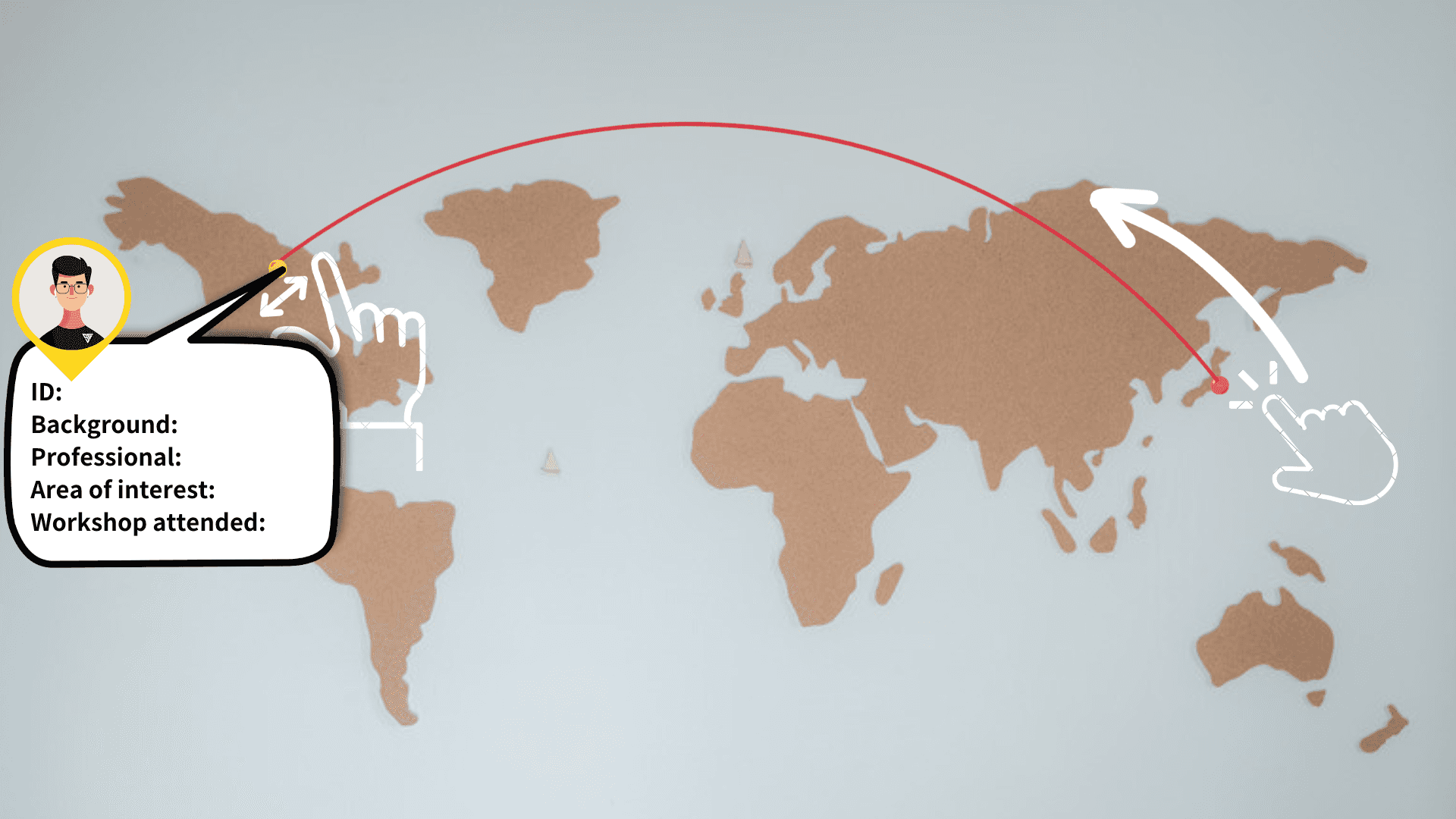 Next, to encourage building connections, we proposed “ interpersonal world map” as a discovery tool to bridge professionals and reduce social friction. This map visualizes the professional backgrounds and interests of all members, which gives users access to Working Ler’s social network, helping them find potential business partners and new clients.